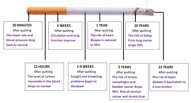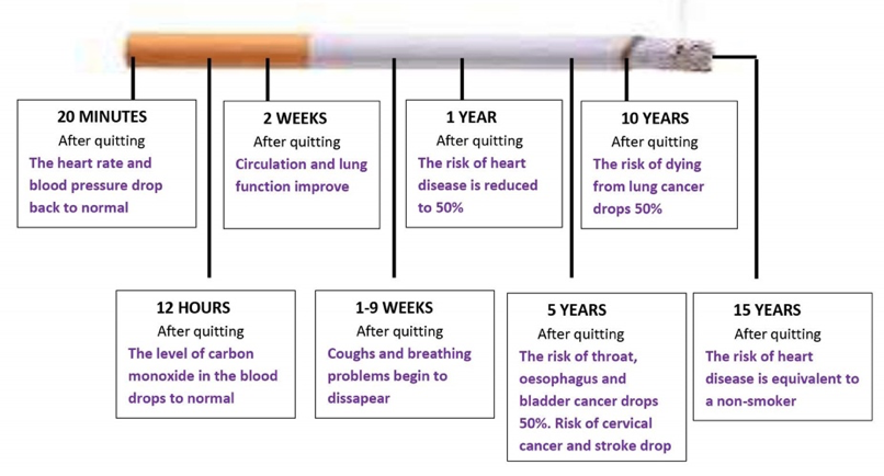I remember early in my education training, I was presented this diagram which displays the benefits of stopping smoking. It is pretty remarkable how your body can begin to heal even after just 20 minutes!