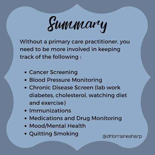 Finally, having a copy of your important medical records so you can keep track of diagnoses, surgeries, allergies, medications, family history- and dates of each of these, can be so important for that time when you are connected with a new PCP. Most are available to you at a cost from your prior PCP.